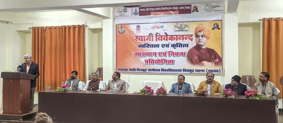 चित्रकूट, 10 जनवरी 2026। निबंध प्रतियोगिताओ, व्याख्यान और स्वास्थ्य परीक्षण कार्यक्रमों के साथ आज महात्मा गांधी चित्रकूट ग्रामोदय विश्वविद्यालय कैंपस में स्वामी विवेकानंद जयंती कार्यक्रम का शुभारंभ हुआ। सीएमसीएलडीपी भवन स्थित बाल्मीकि सभागार में आयोजित व्याख्यान कार्यक्रम की अध्यक्षता कुलगुरु प्रो आलोक चौबे ने की।