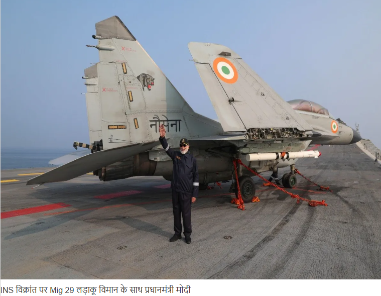प्रधानमंत्री नरेंद्र मोदी द्वारा INS विक्रांत पर दीवाली मनाई गई और भारतीय नौसेना की उपलब्धियों पर जोर देते हुए आत्मनिर्भर भारत और मेक इन इंडिया के महत्व के बारे में बात की